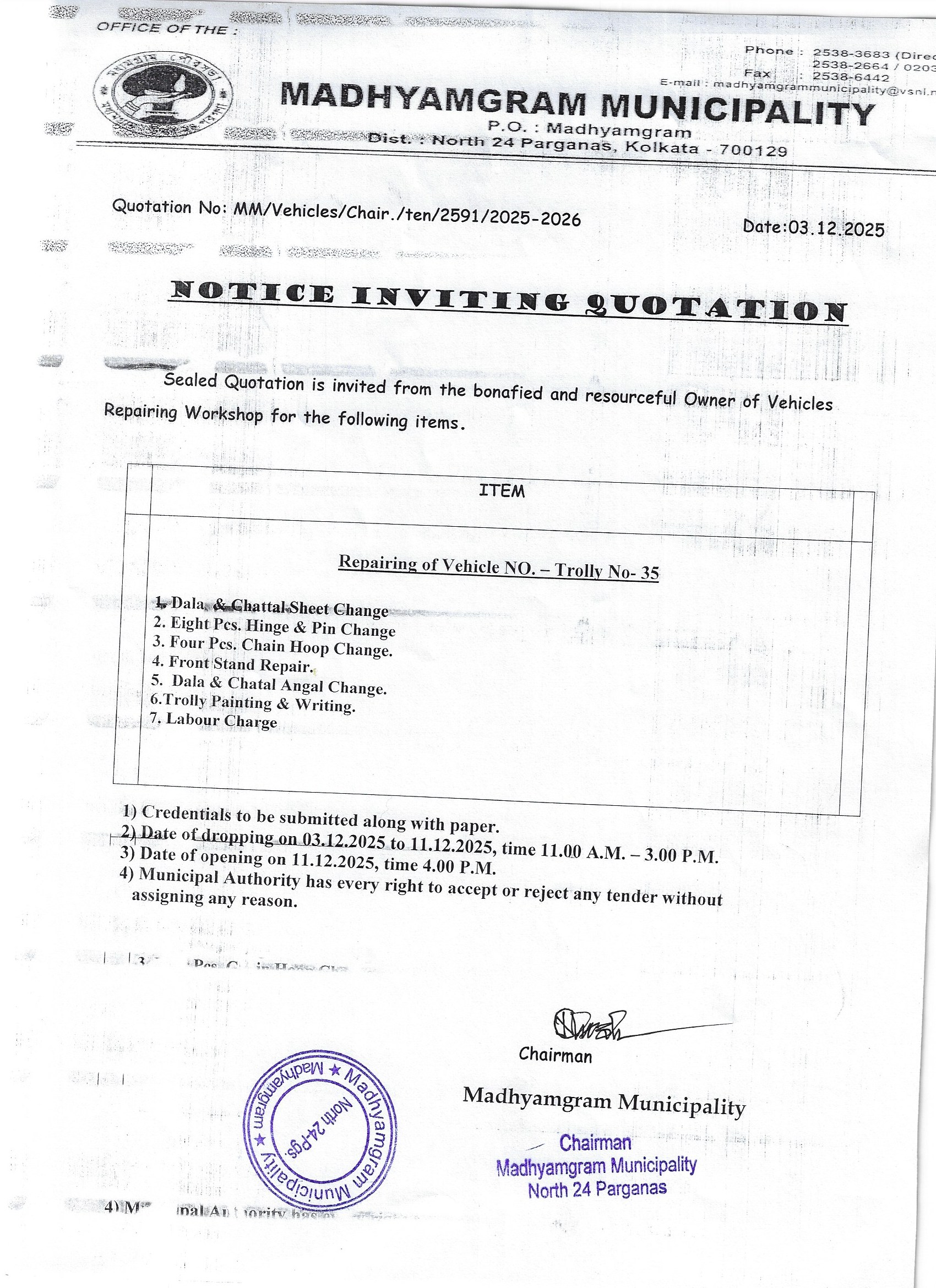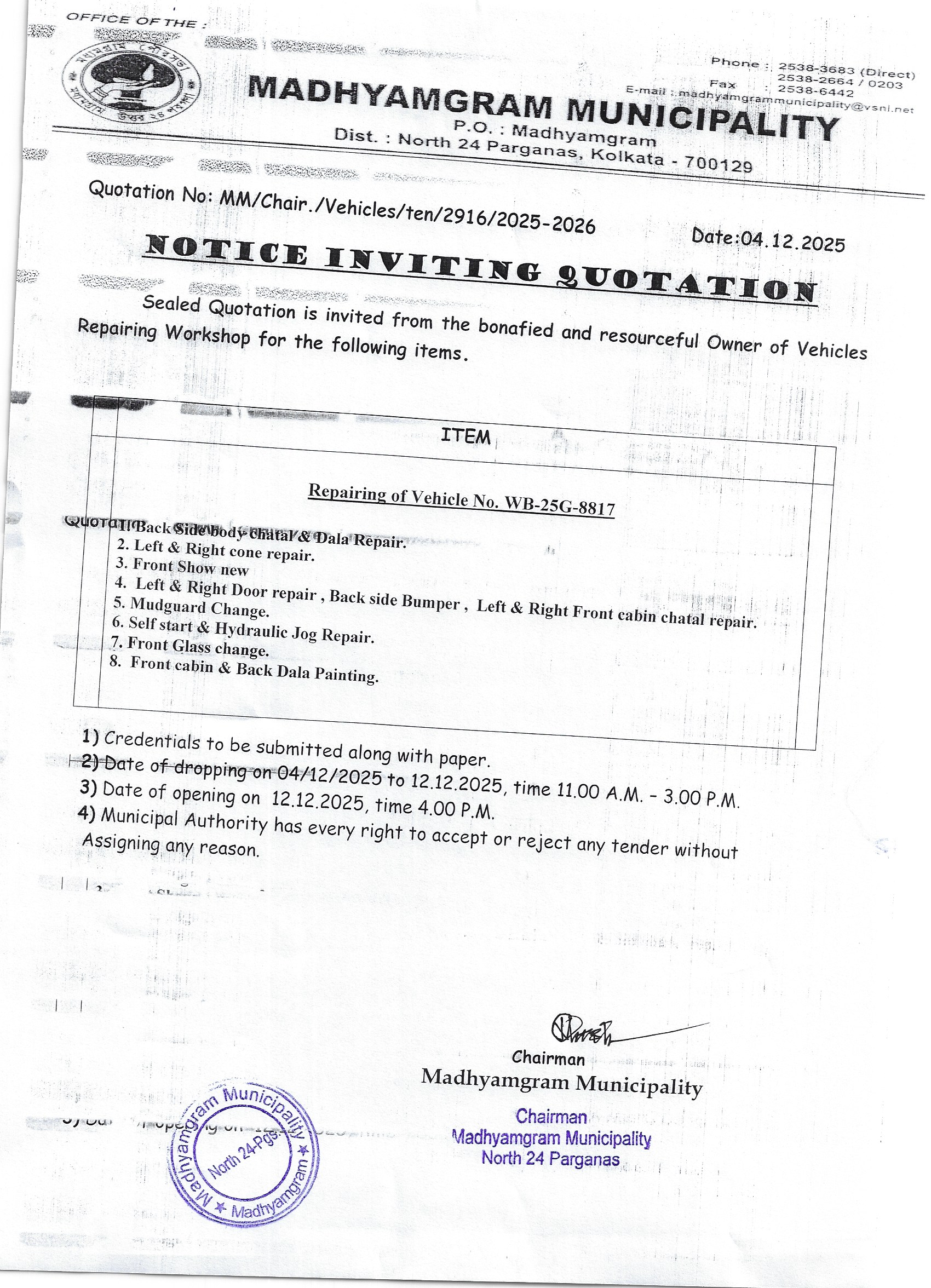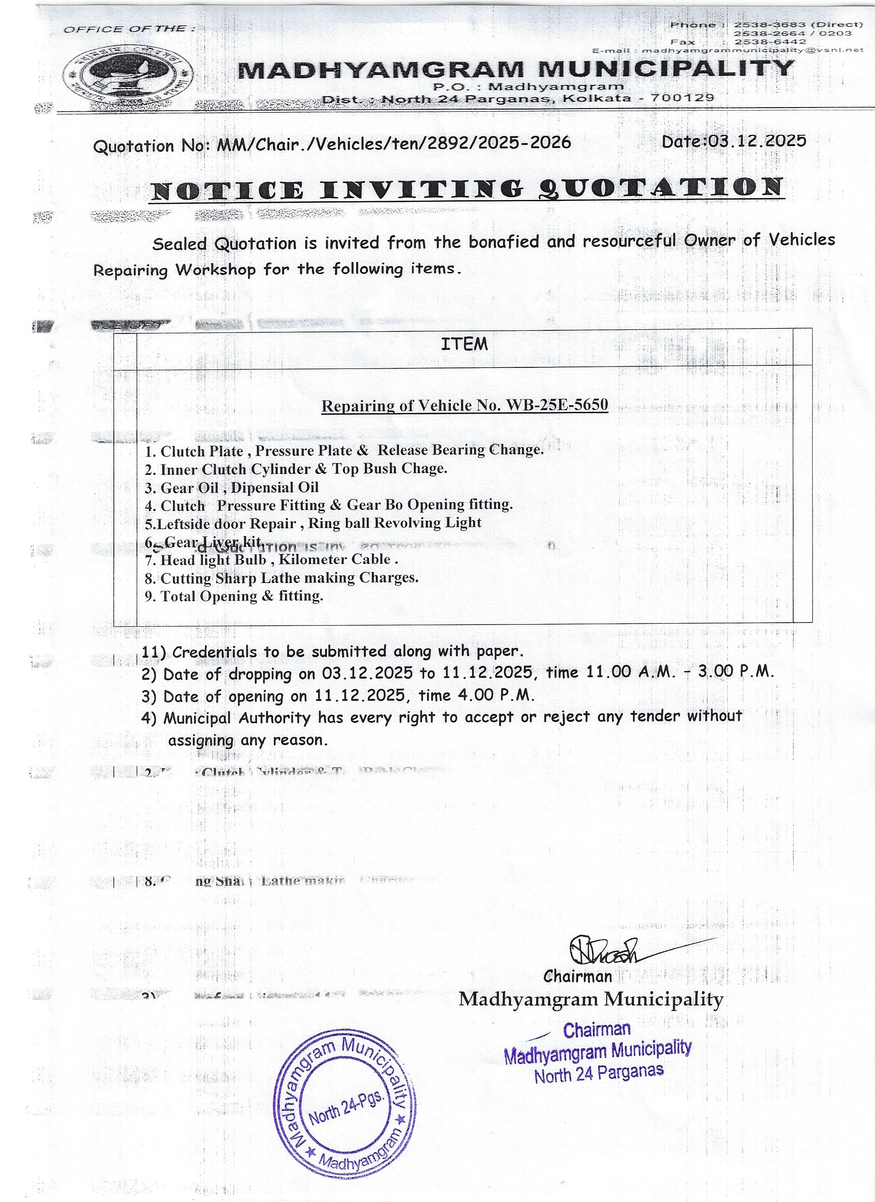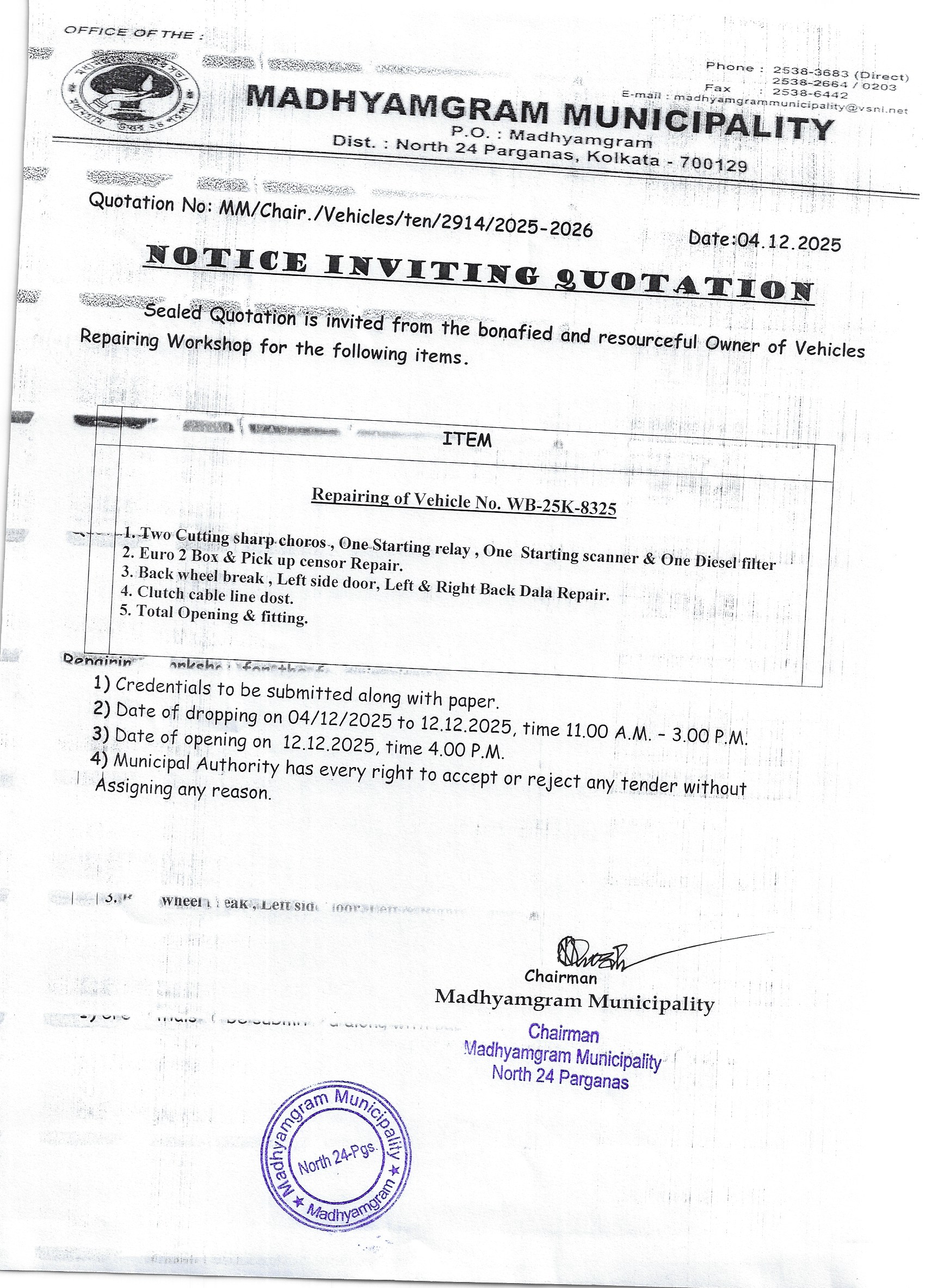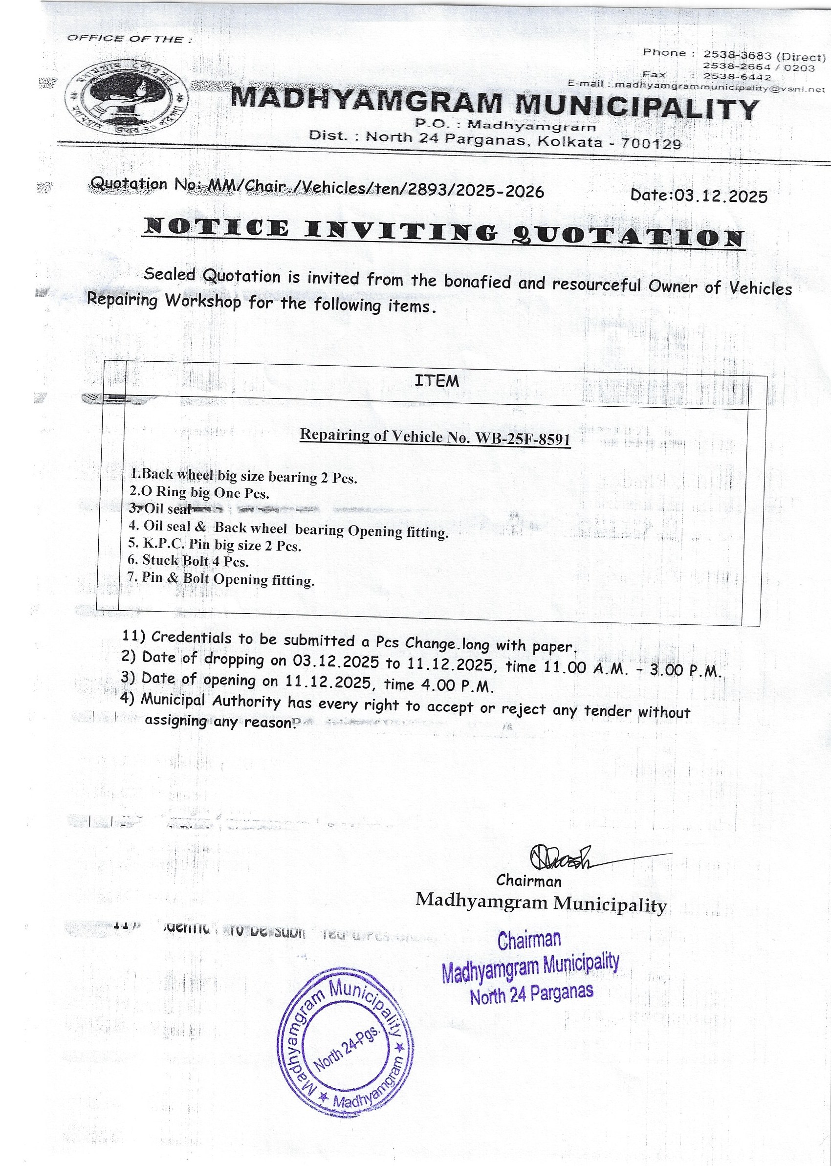 MM/CHAIR/VEHICLE/TEN/2891/2025-26 DATE -03.12.2025