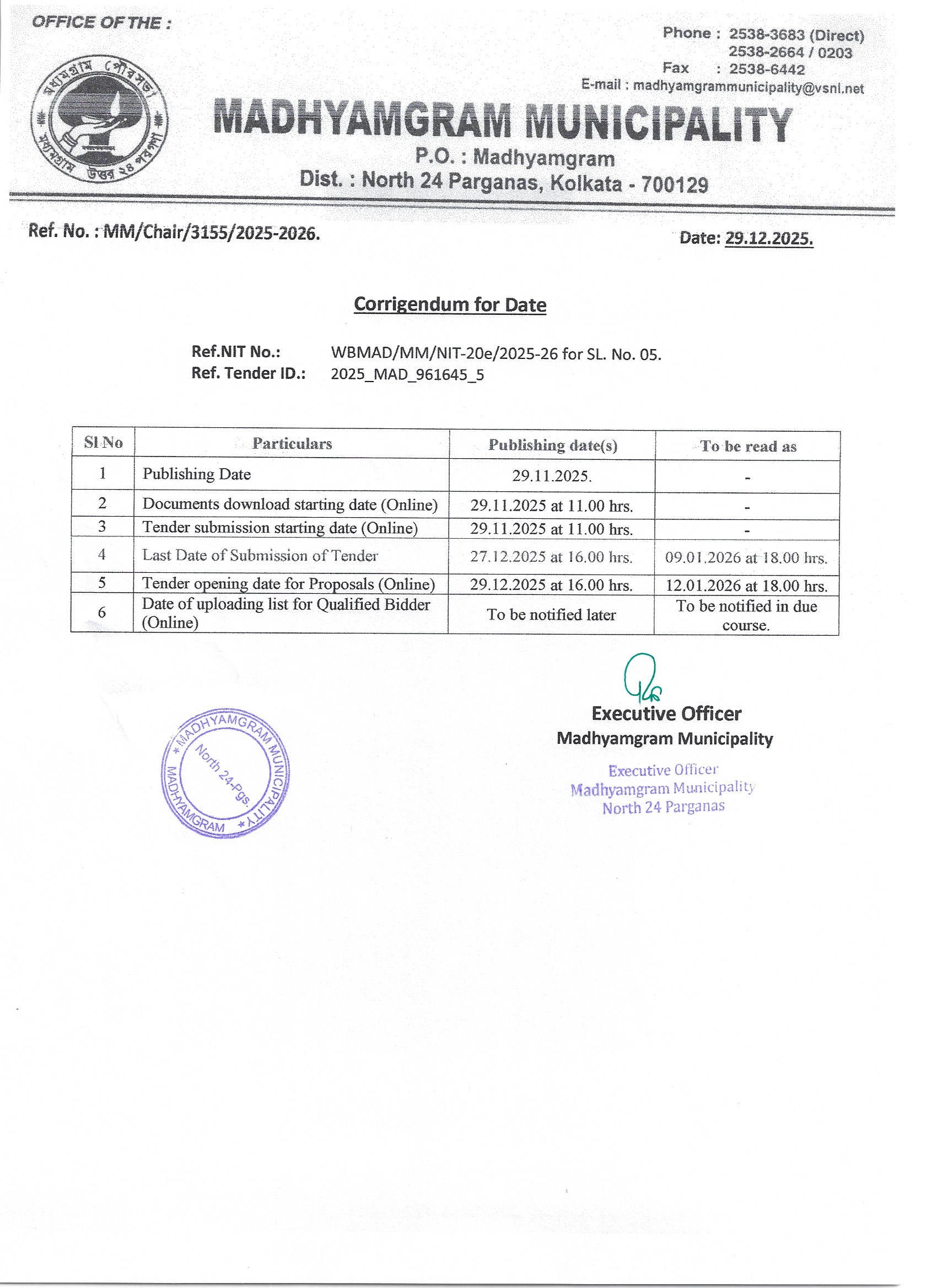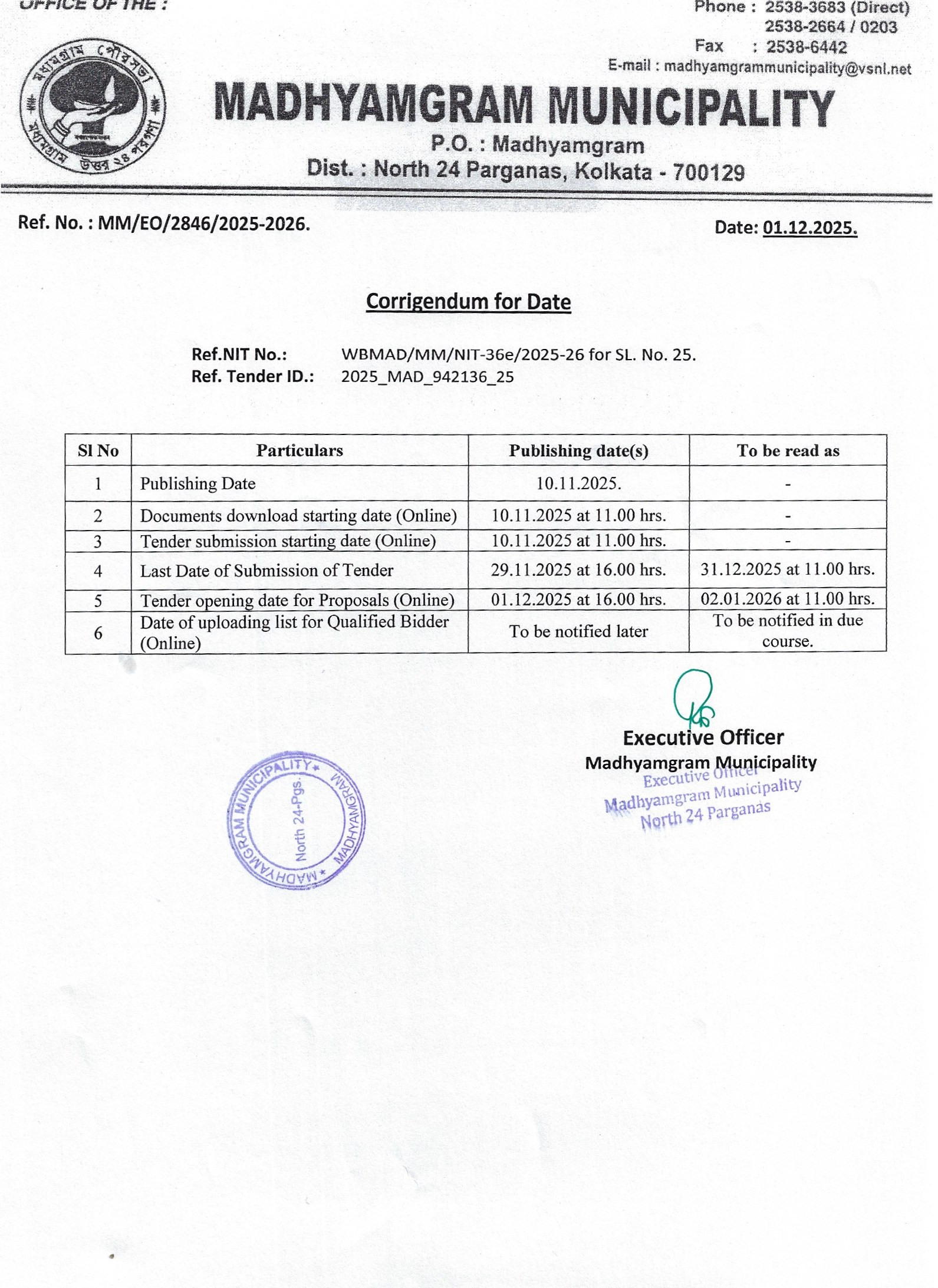 WB/MAD/MM/NIT-36e/2025-26 Date-06/11/2025 CORRIGENDUM2 |