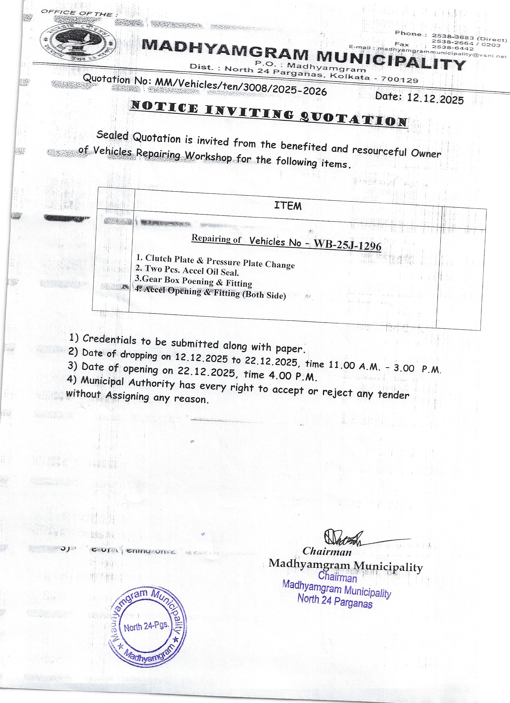 MM/CHAIR/VEHICLE/TEN/3008/2025-26 DATE -12.12.2025 |