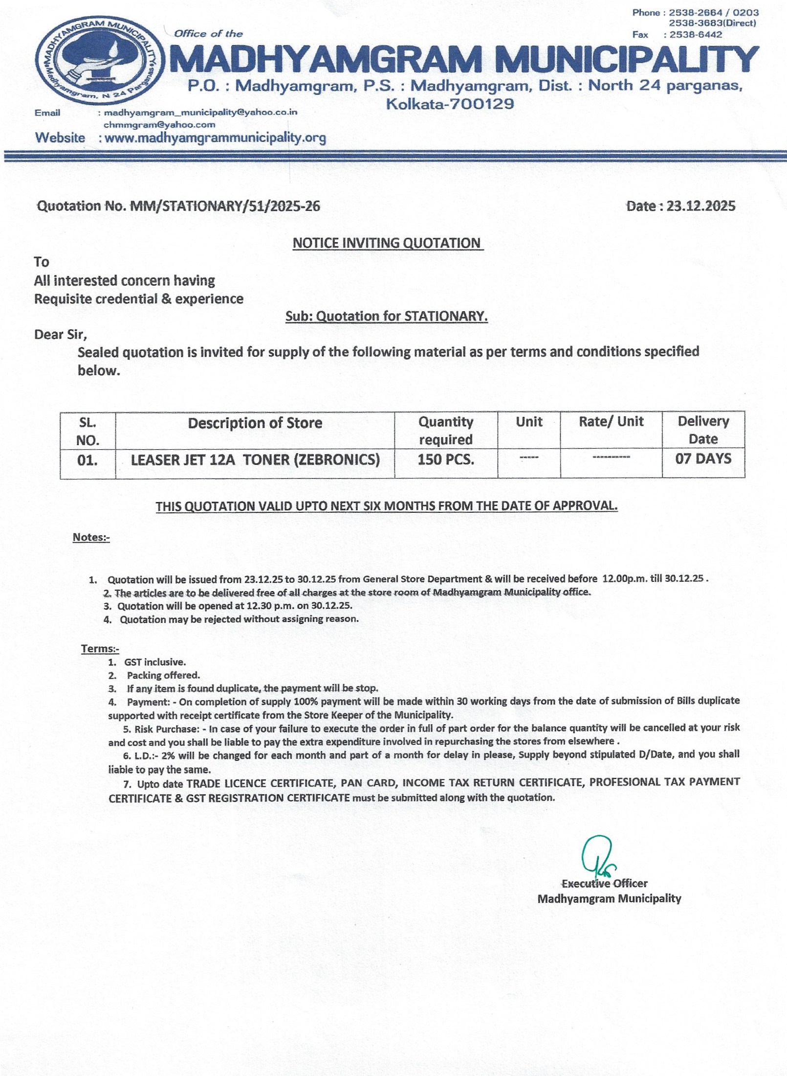 MM/EO/STATIONARY/51/25-26 DATE-23.12.2025 |