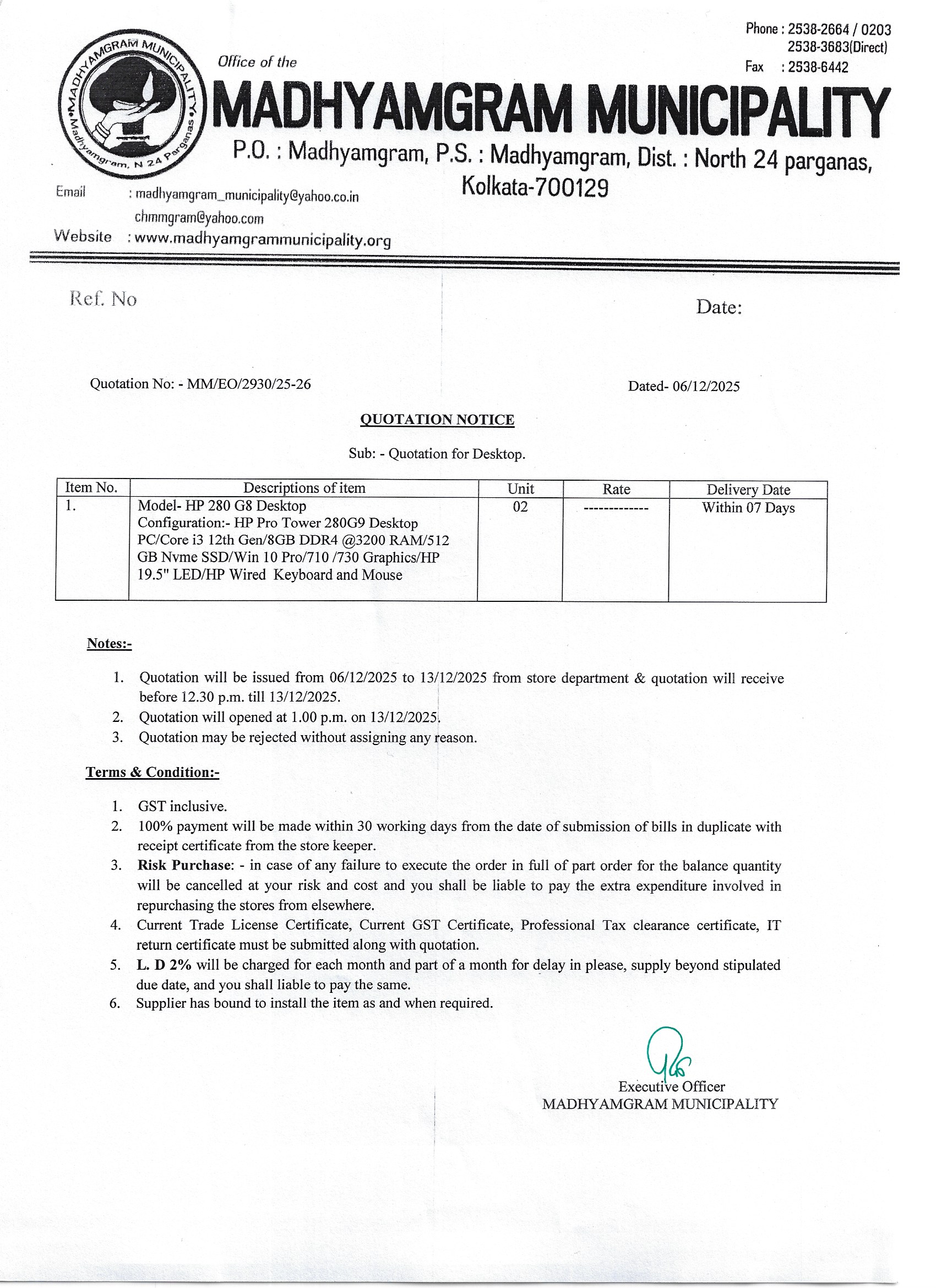 MM/EO/STATIONARY/2931/25-26 DATE-06.12.2025 |