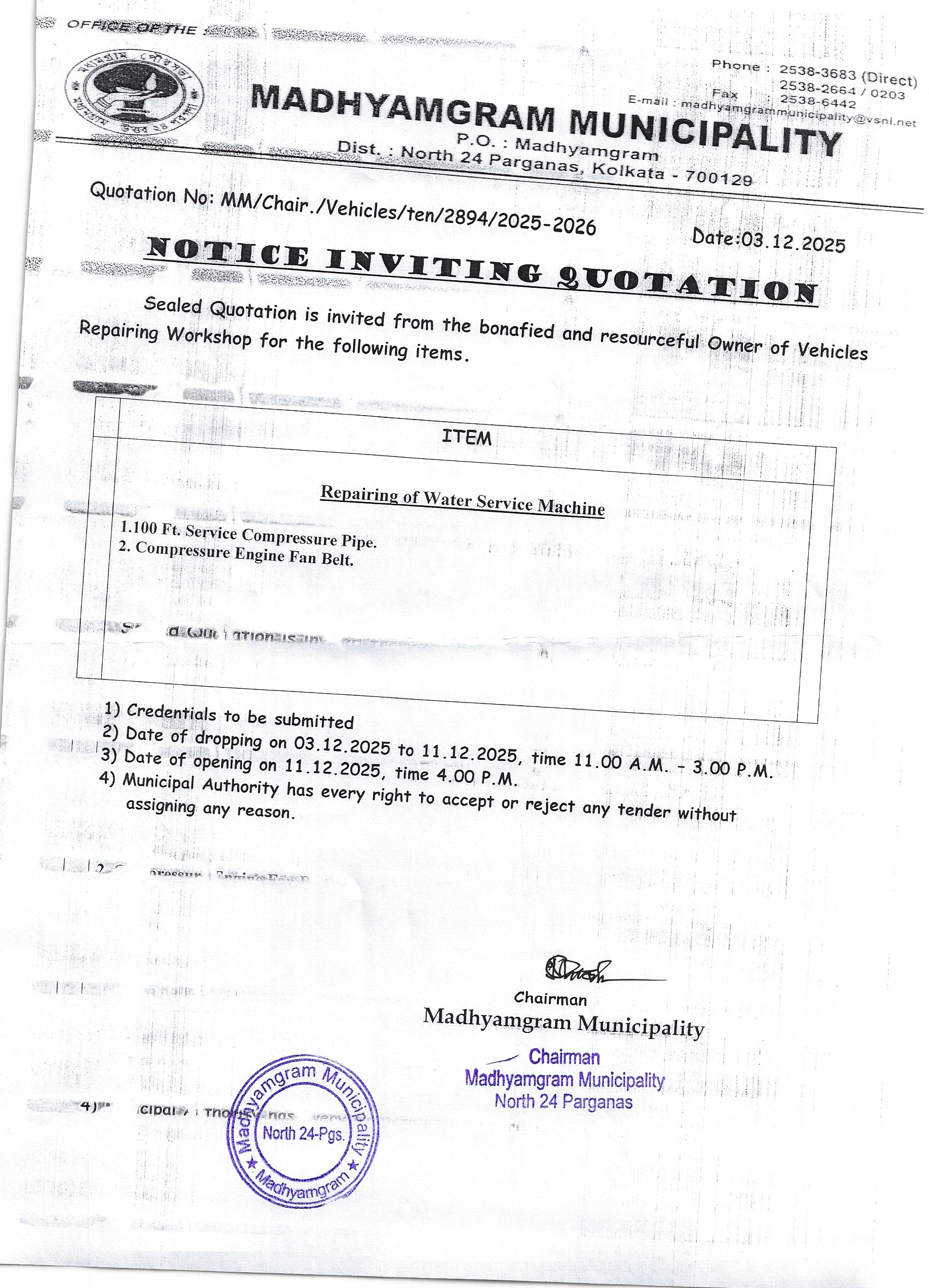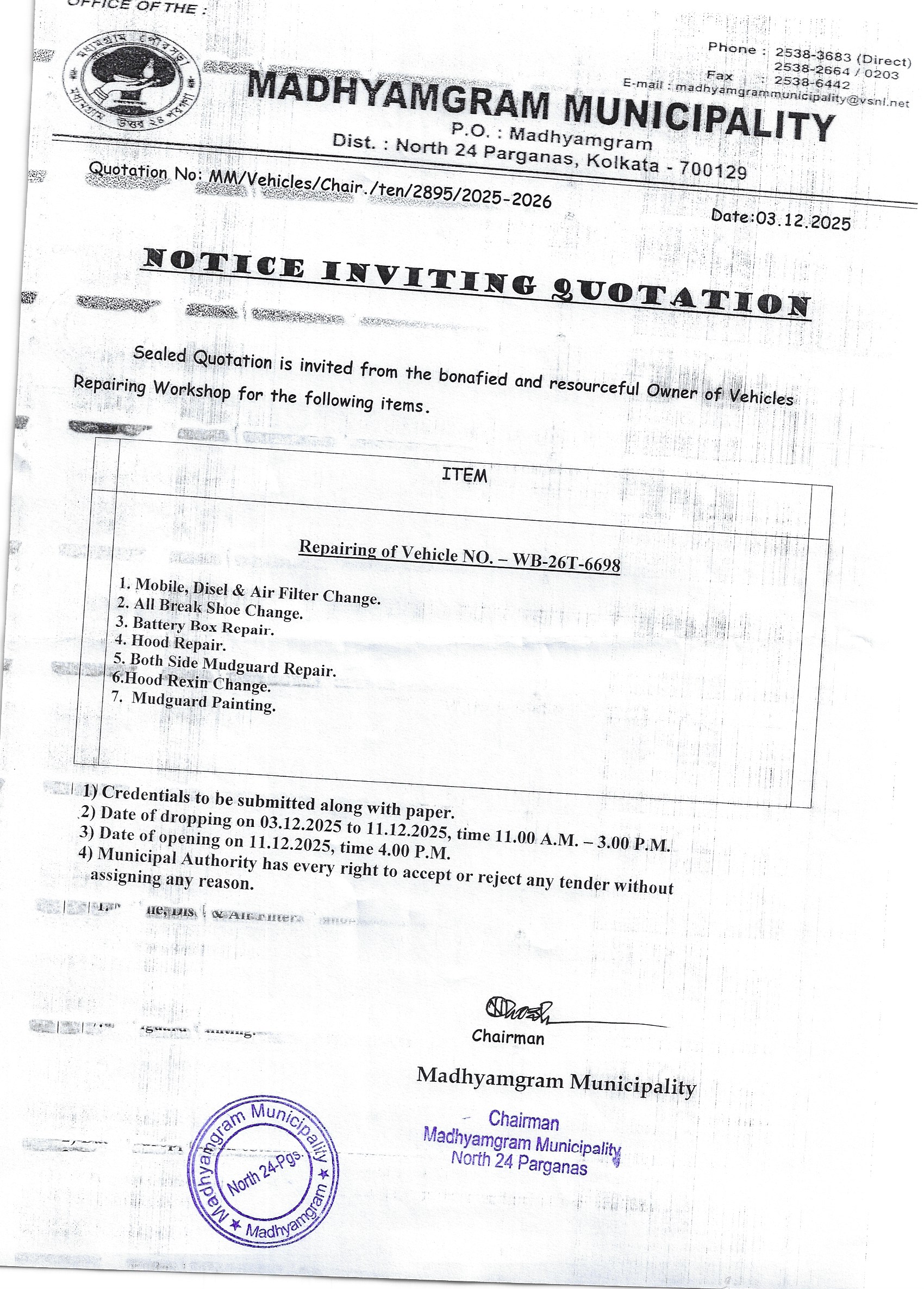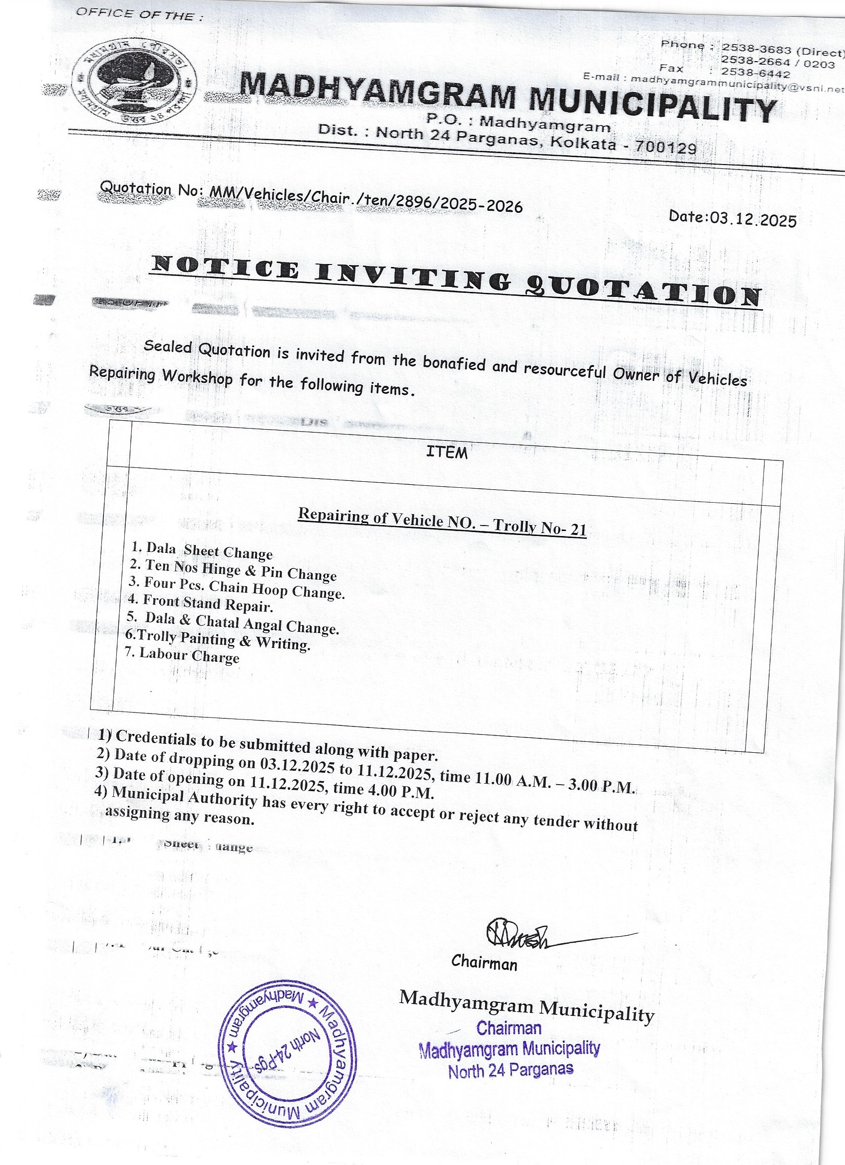 MM/CHAIR/VEHICLE/TEN/2896/2025-26 DATE -03.12.2025 |