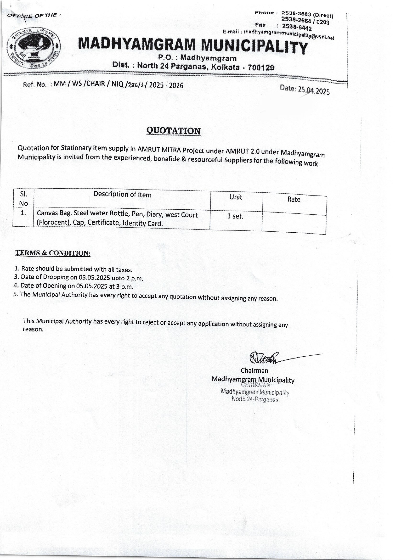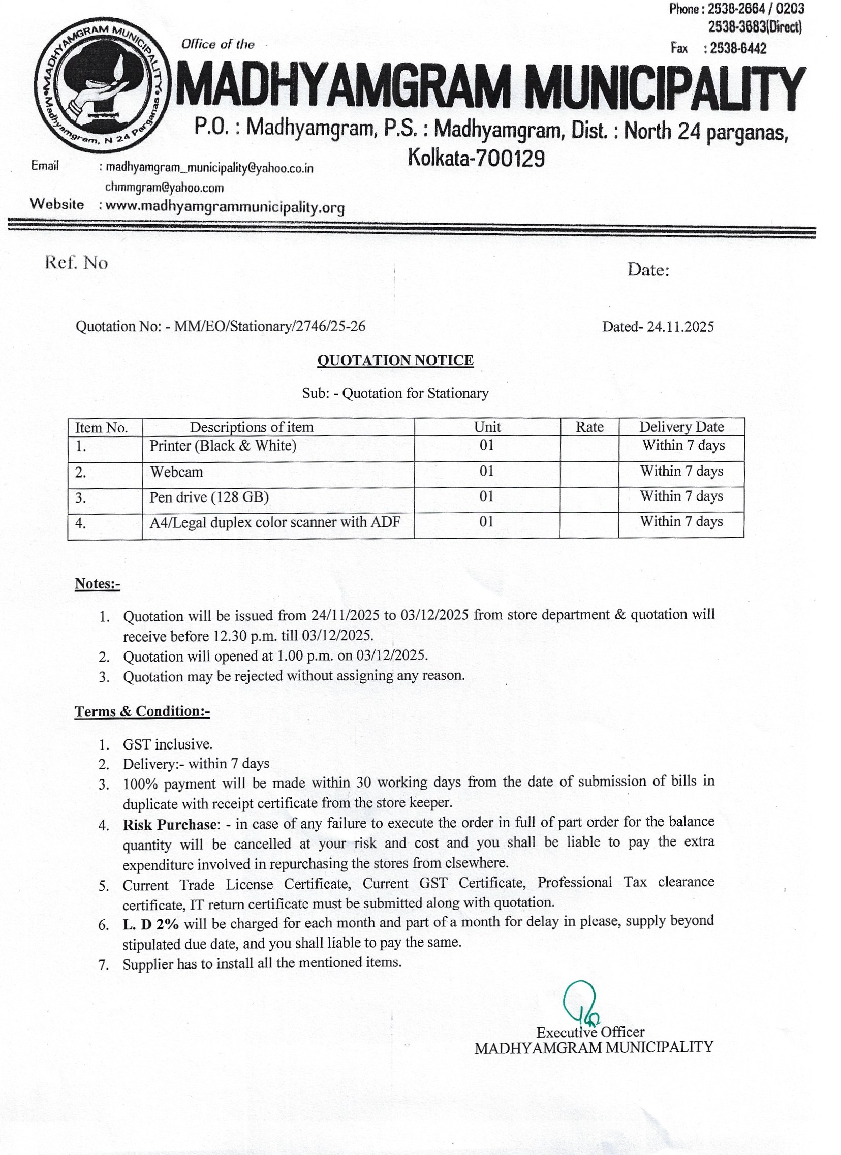 Ref:MM/STATIONERY/25/2023-24 DATE-30.01.24