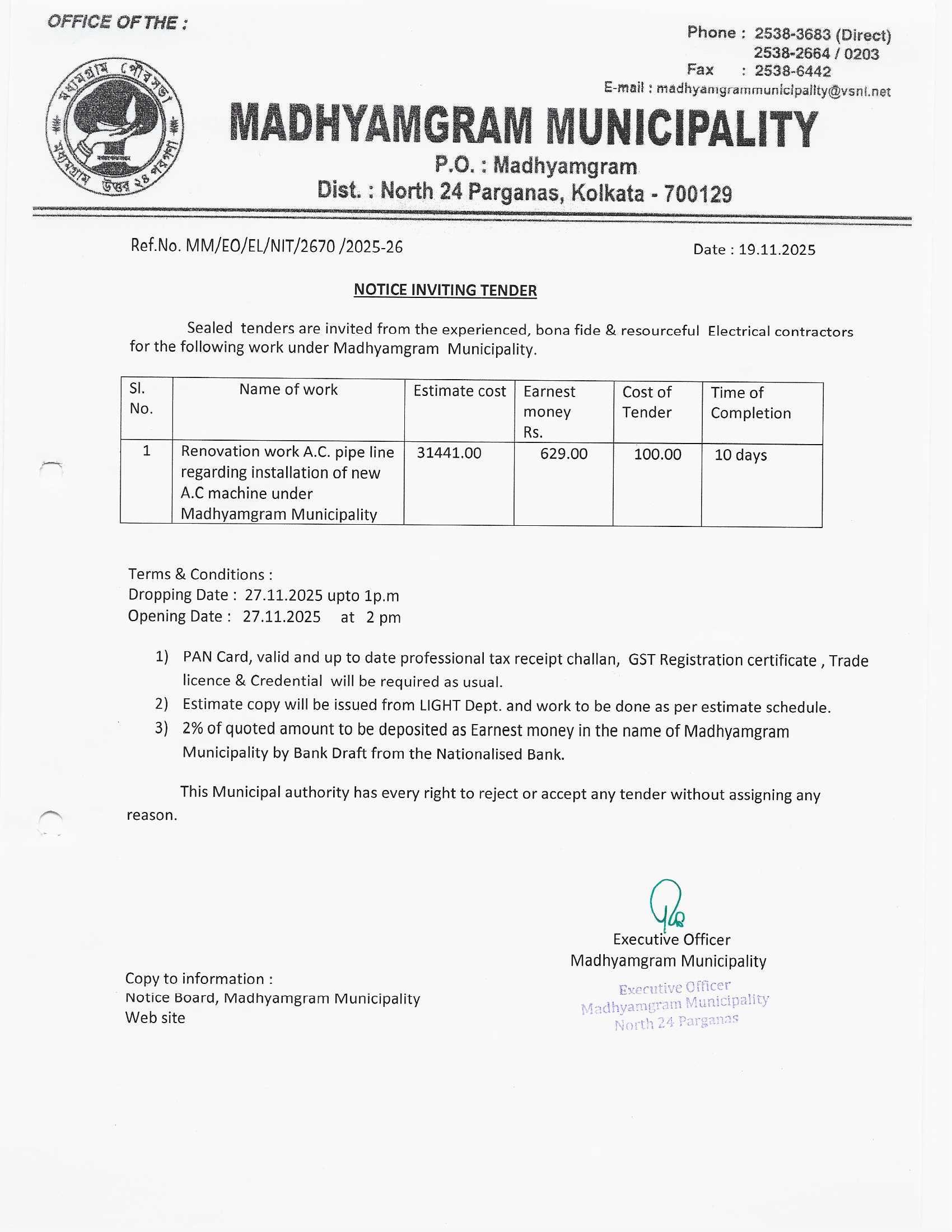 MM/EO/EL/NIT/2670/2025-26 DATE-19.11.2025 |